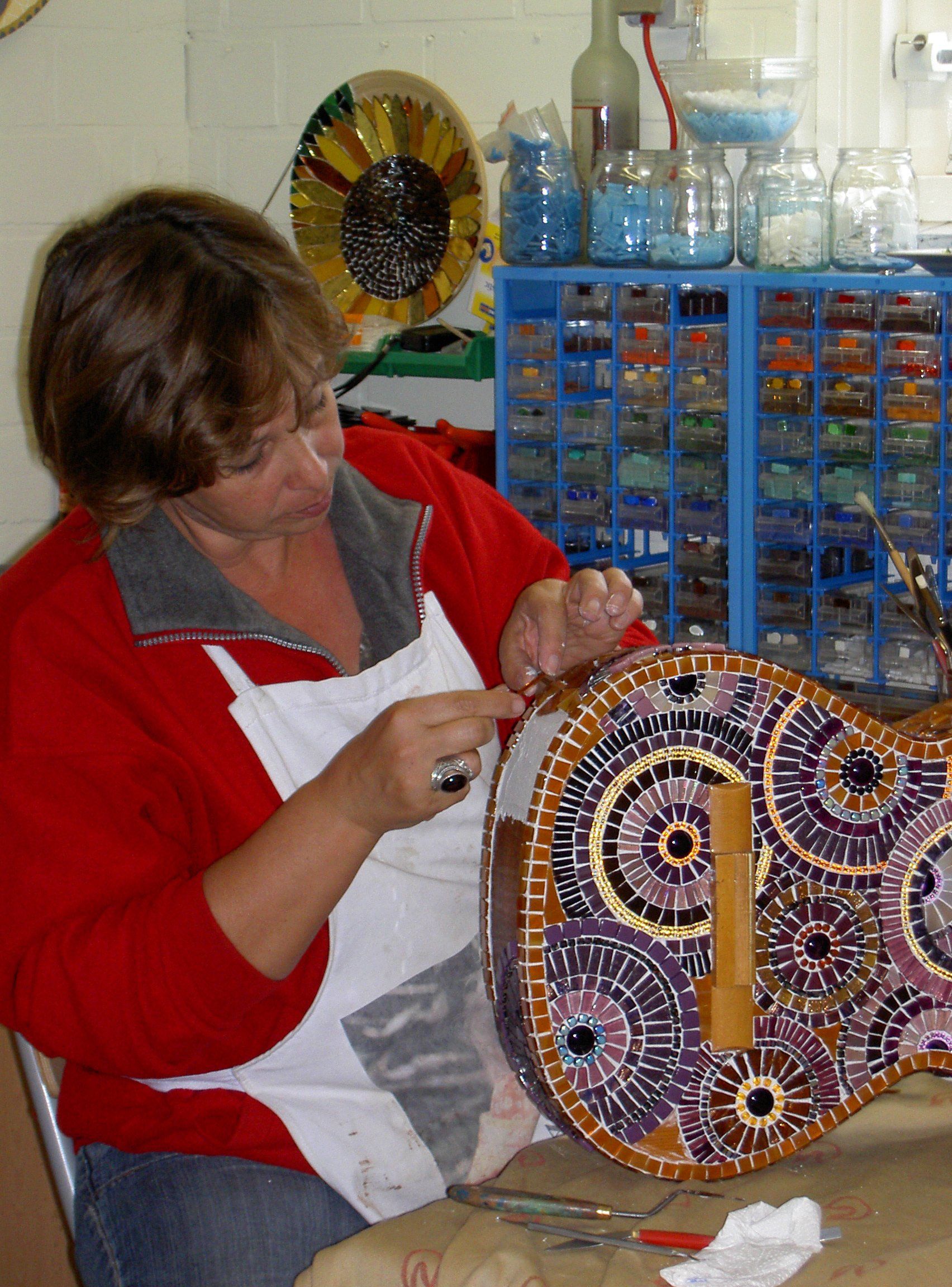 Op zoek naar een bezigheid waar ik ècht warm voor liep, ontdekte ik in 2004 mozaïek. Mensen die mij persoonlijk kennen zullen nu wellicht glimlachen (of zuchten ;-), maar ’t vast herkennen: “Anneke” is een synoniem voor “glas” en “mozaïek”.