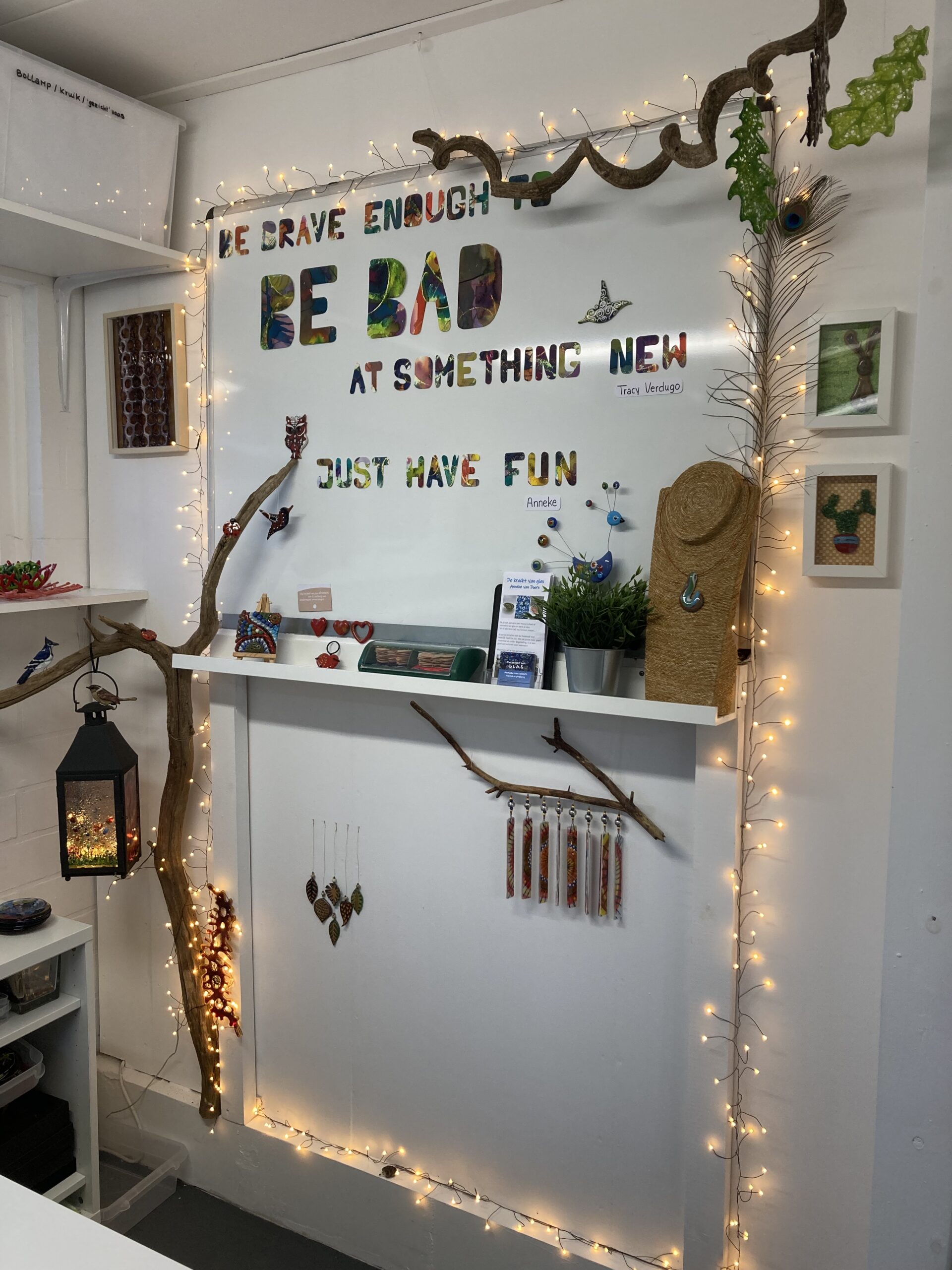 Het is heel bijzonder om te zien hoe mensen (vooral degenen die denken niet ‘creatief genoeg’ te zijn en er eigenlijk maar weinig vertrouwen in hebben) helemaal òm zijn als ze hun resultaat zien! Dàt is de kracht van glas!